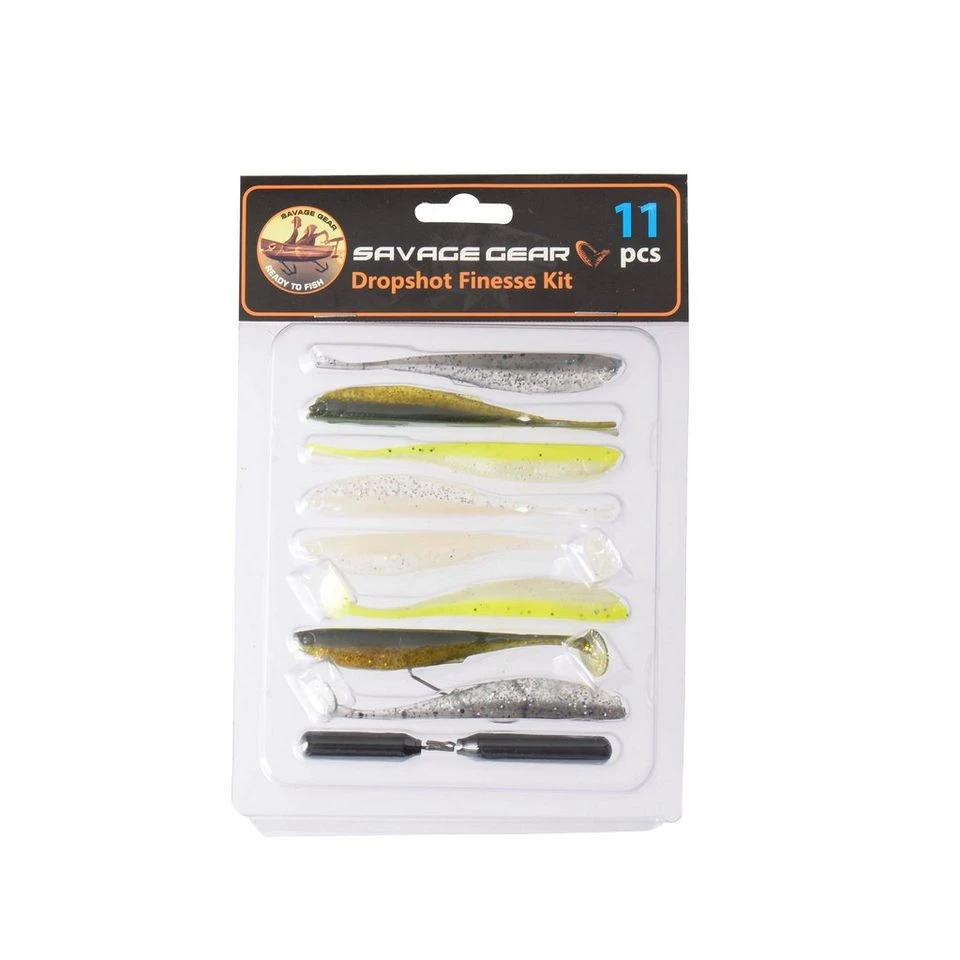 The Savage Gear Finezze Dropshot Kit contains 11 pieces of various accessories, attachments and lure pieces to complete your ultimate drop shot angling set up.