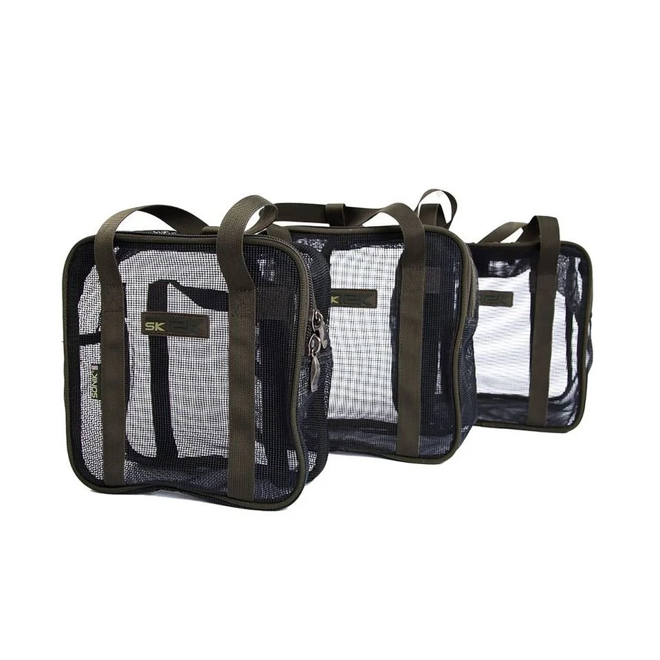 The SK-TEK Airdry Bags are constructed from freezer proof rubberised mesh so you can freeze bait in-between sessions. They have a nifty, hang anywhere clip to help you keep bait safe and dry. Built to last with large No.10 coil zips and reinforced webbing and carry handles. Available in three sizes, 3kg 5kg 10kg, all of which conveniently fit the SK-TEK cool bags as part of a modular system. Key features: – Rubberised freezer safe mesh – Innovative hang anywhere clip – Reinforced webbing and handles – Large No.10 size double zips – Modular compatibility with SK-TEK cool bags – Available in 3 sizes, small 3kg, medium 5kg, large 10kg