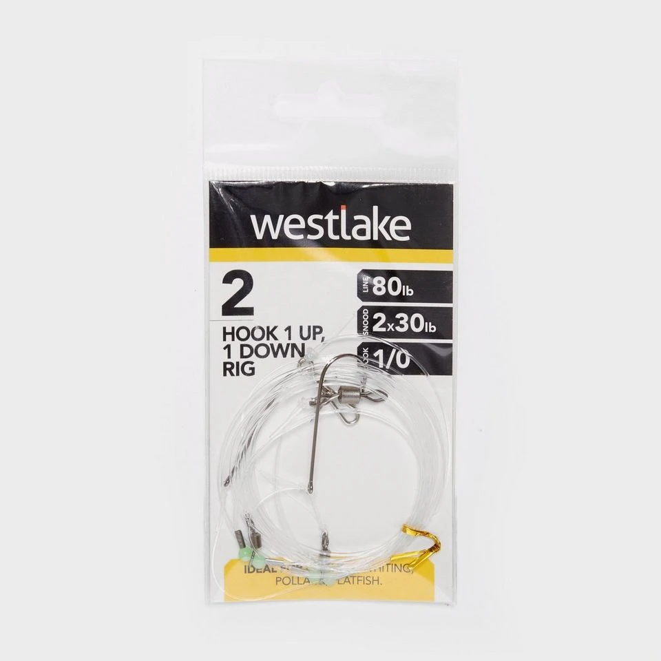 The 1Up 1Down rig from Westlake has been designed to fish with one bait above the lead and one below, maximising the area covered. It is ideal to use when fishing from the shore, hoping to catch Cod, Whiting, Pollack and Flatfish.
