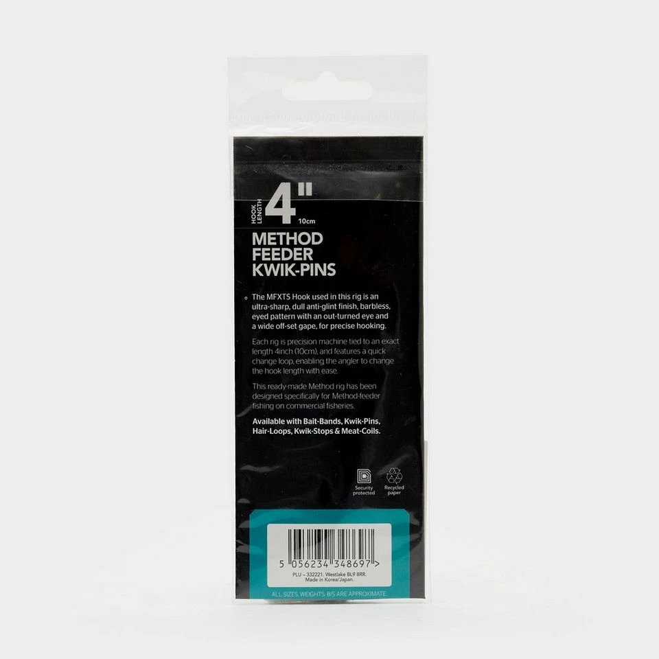 Machine tied to an exact length; the Westlake Method Feeder Kwik-Pin Rig features a quick-change loop which allows the angler to change the hook with ease. Designed for method feeder fishing on commercial fisheries, the Method Feeder Bait-Band Rig is a must have for your days by the lake.