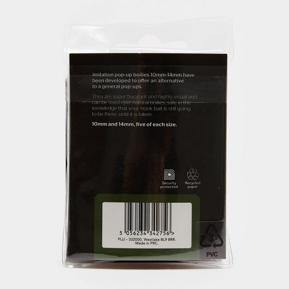 The Pop-up Boilies from Westlake are super buoyant and highly visual. They can be used over natural boilies, or as an alternative. They are available here in two sizes, 10mm and 14mm and in black.