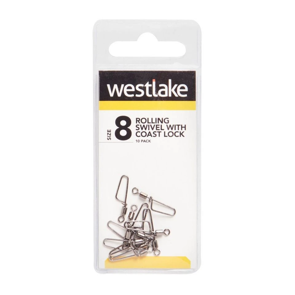 Featuring a black, round-eye rolling swivel, the Westlake Rolling Swivel Coast Lock has a very durable and heavy-duty coast lock snap. The size 8 offers a break test of 12kg and ideal for fishing at sea.