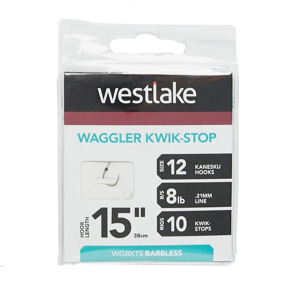 Each rig of the Waggler Kwik-Stop from Westlake is precision machine tied to an exact length of 15 inch. Featuring a quick-change loop that enables the angler to change the hook length quickly, this ready-made rig has been designed for either waggler, straight-bomb or feeder fishing on commercial fisheries.